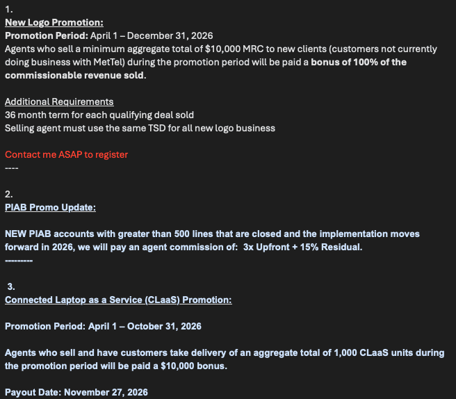 View the current SPIFFs offered by some of our preferred carriers below.